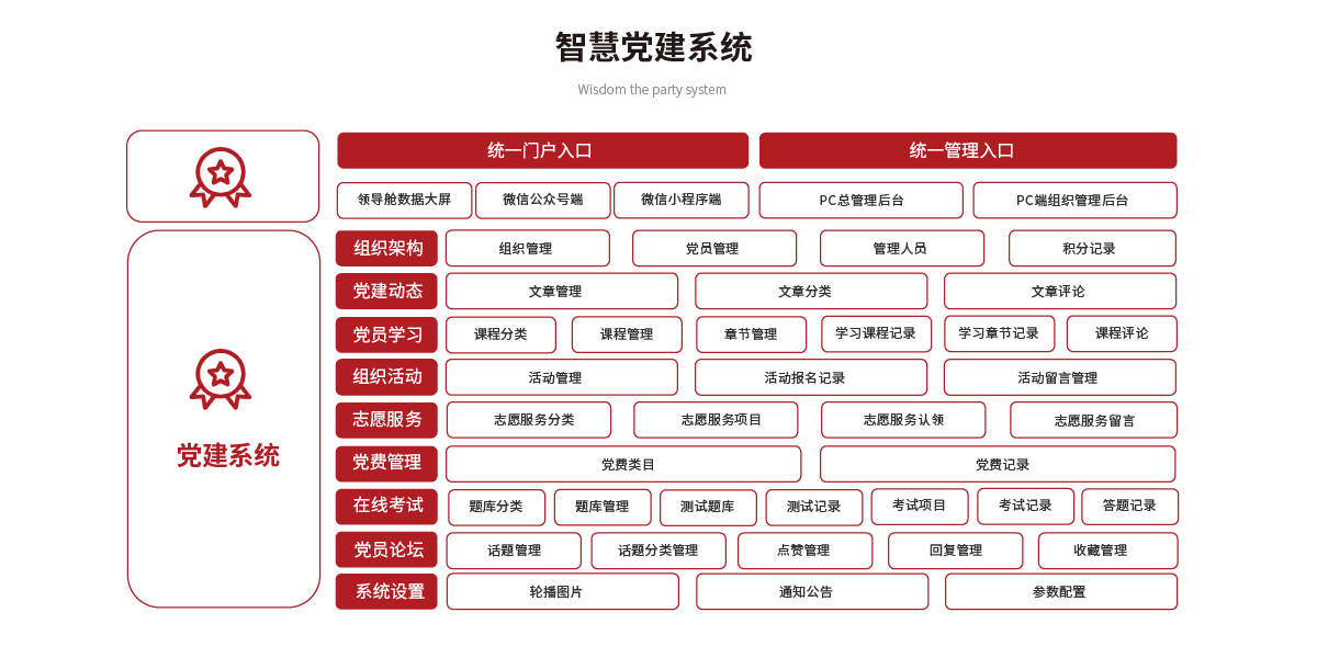 黨建系統主要用于組織和記錄黨建活動,實現了對三會一課等組織生活的上報、審核、落實、提醒、考勤、記錄、歸檔、督查督辦、統計分析等各個環節進行精全方位管控。