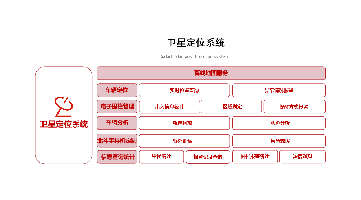 衛星定位系統基于我國自主研發的北斗衛星導航系統,以衛星數據傳輸作為信息安全保障,通過北斗指揮機接收定位數據,確保每一條信息安全可靠。 系統可應用于車載定位或人員手持定位業務、基于離線地圖,避免公車私用的同時掌握車輛的位置動態,也更有利于合理安排派遣任務。